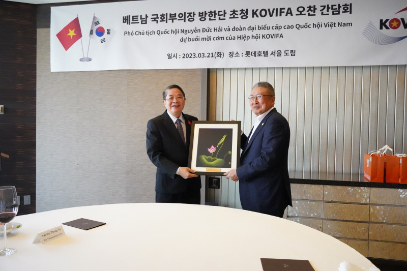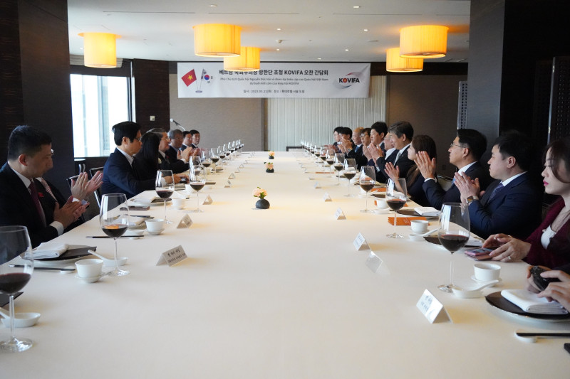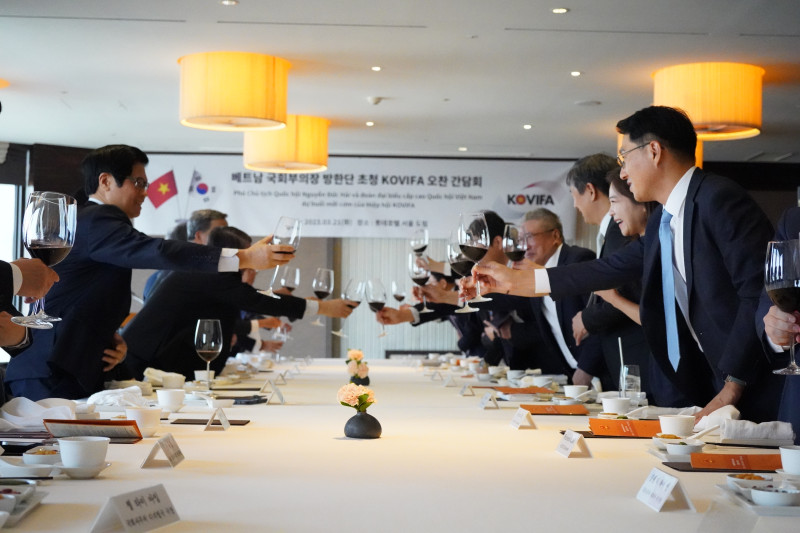 2023년 첫 베트남 고위급 방문으로 응우옌 득 하이(Mr. Nguyễn Đức Hải) 베트남 국회부의장과 대표단이 공식 방한하였으며, 한국-베트남 친선협회 (회장 이신재, 이하 KOVIFA)는 방한단을 초청하여 오찬 간담회를 개최하였습니다. 오찬 간담회에는 KOVIFA 이신재 회장을 비롯하여 총 11명의 KOVIFA 회원분들께서 참석하였고 베트남 측에서는 응우옌 득 하이(Mr. Nguyễn Đức Hải) 국회부의장, 응우옌 부 뚱 (Mr. Nguyễn Vu Tung) 주한베트남 대사를 비롯하여 총 14명의 베트남측 대표단이 참석하여 자리를 빛내주셨습니다. 이번 간담회에서는 민간 차원에서 진일보한 양국의 우호 관계 강화를 위해 실질적이고 내실있는 KOVIFA 활동 계획 공유 및 협력을 논의하였습니다. |